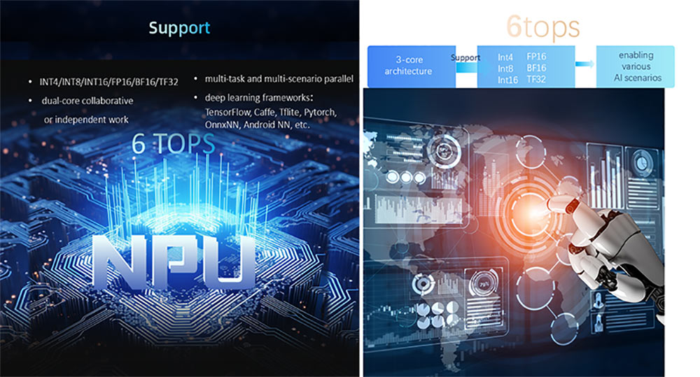 4. Edge AI: De integrerte 6 toppene NPU gjør det mulig for utviklere å bygge AI-applikasjoner med lav latens som ansiktsgjenkjenningssystemer og smarte sensorer.